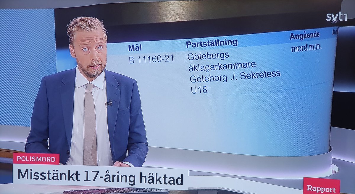 Han är 17 år och medborgare i både Sverige och i ett fattigt land på en sydlig kontinent. SVT Rapport avslöjade 4 juli 2021 att han häktats för mord. Brottmålets nummer är B 11160-21 enligt Public Service. Han misstänks även för mordförsök i en härva som går tillbaka till tiden då han var elev på Svartedalsskolan i Biskopsgården. Den som misstänks för polismordet har fått hela sin familj flyttad av säkerhetsskäl. Max fyra års ungdomsvård väntar om han fälls för mord på polisen.
