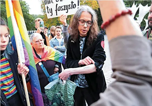 Bild 1/9 2021 på konstnären Dan Park och demonstranter mot hans konst om Nazityskland:
