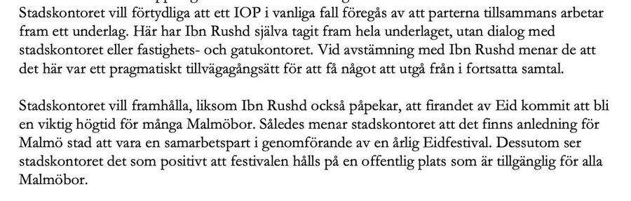 "Förslaget till IOP-avtal omfattar resurser i form av kontanta medel och arbetstid från stadskontoret, fastighets- och gatukontoret samt Ibn Rushd själva. Stadskontoret föreslås bidra med 560 000 kronor och fastighets och gatukontoret med 180 000 kronor.